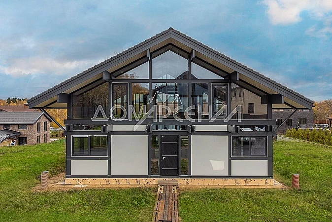 • Дом в стиле Фахверк под отделку с большими панорамными окнами