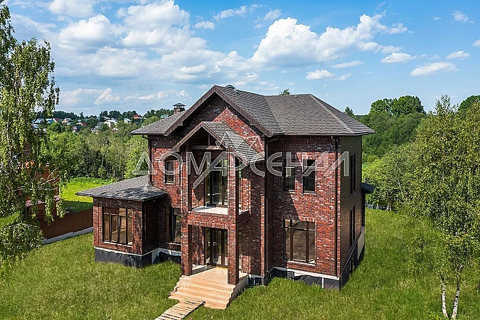 • Стены из керамического кирпича с утеплением, облицованы немецким клинкерным кирпичом, кровля-мягкая черепица