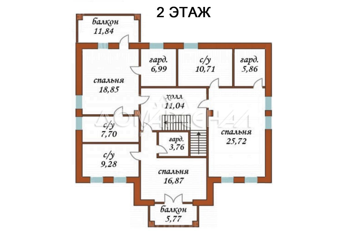 2 этаж: холл, 3 мастер-спальни 17,19 и 26 кв.м с гардеробными и с/у каждая