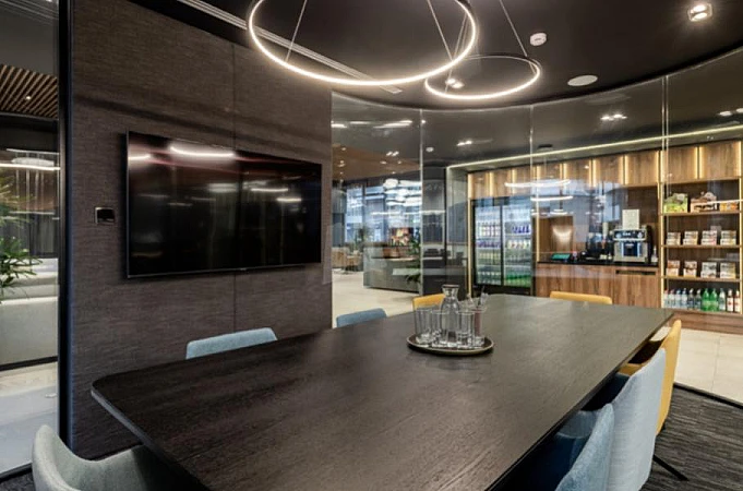 3 закрытые переговорные комнаты для встреч с клиентами.