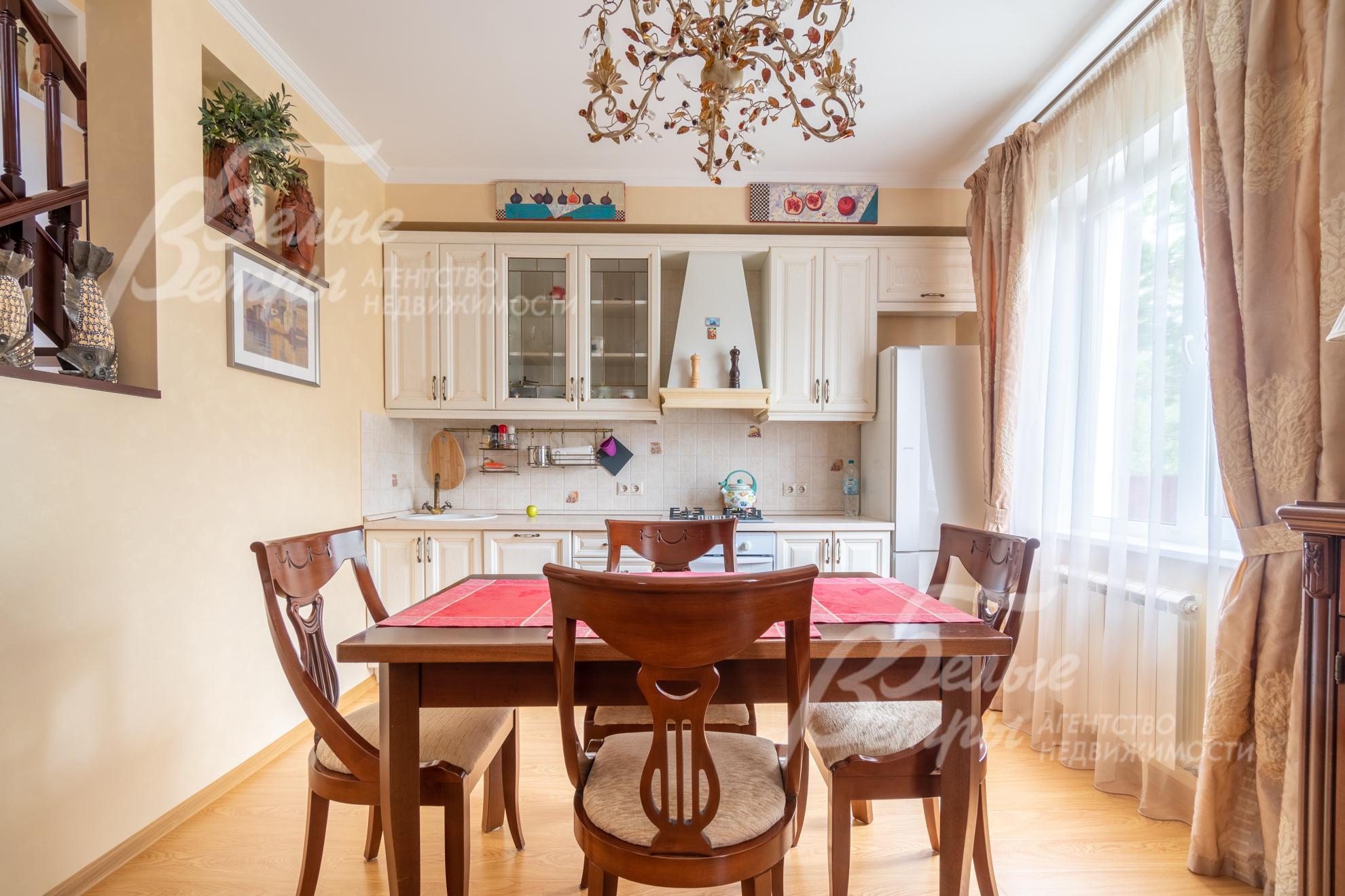 Мебель, оборудование: дом полностью меблирован, почти вся мебель в интерьере – итальянского производства. На кухне – гарнитур из массива дуба (Дарина, Чехия) со встроенной техникой (посудомоечная машина Bosch, газовая плита Siemens, холодильник Gorenje), обеденная группа на 4 персоны из массива дерева. Во всех спальнях - итальянские гарнитуры. Есть итальянский комод из массива дерева с большим зеркалом, стильный китайский комод, финский стол (в кабинете), телевизоры (Samsung). В санузлах – сантехника Ideal, Kaisek, Gustavsberg, стиральная машина Gorenje. Дом украшают итальянские люстры.