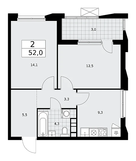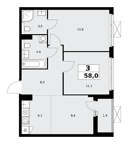 Купить 3к квартиру 55 м² в ЖК Ильинойс