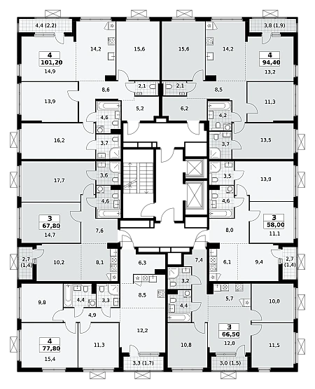 Жилая площадь 36.99 м2, кухня 4.07 м2. Площадь комнат: 14.70/11.33/10.96 м2, квартира без отделки, лоджий - 1, окна выходят во двор.