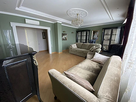 Установлена система кондиционирования по всей квартире, тёплые полы. 2 застеклённые лоджии, 3 с/у. Дизайнерский ремонт.