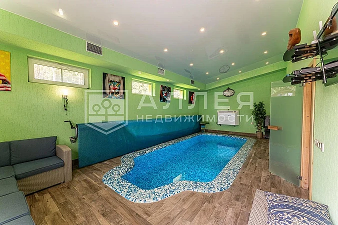 Дом под ключ с бассейном и баней. Общая площадь дома 500 м2. Дом меблирован. Установлена качественная техника и сантехника премиальных брендов.