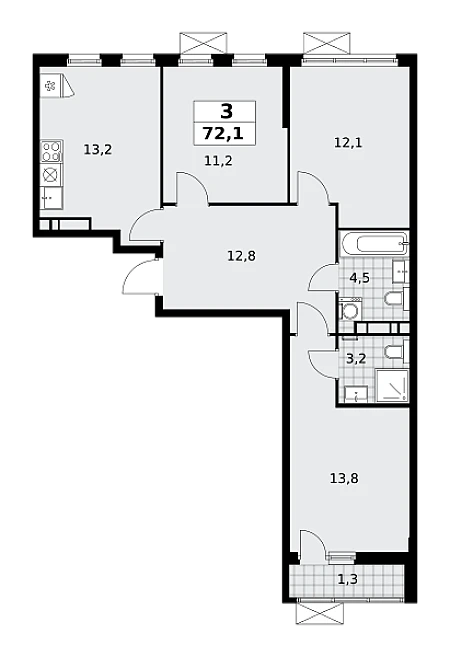 Купить 3к квартиру 65 м² в ЖК LIFE Варшавская
