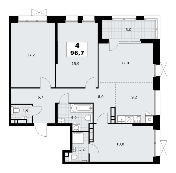 Продается квартира в ЖК «Остров» площадью 82,8 кв. м на 4-м этаже