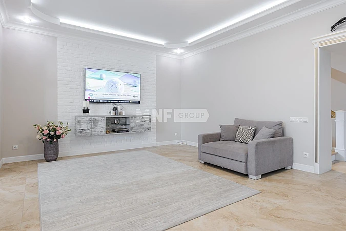 Дом полностью меблирован и готов к проживанию. В доме 4 спальни, библиотека, большая детская комната, 3 с/у, сауна с комнатой отдыха.