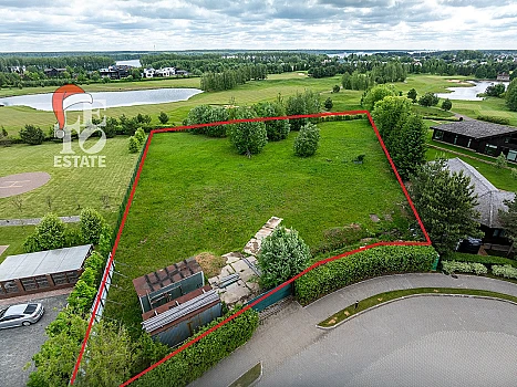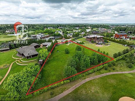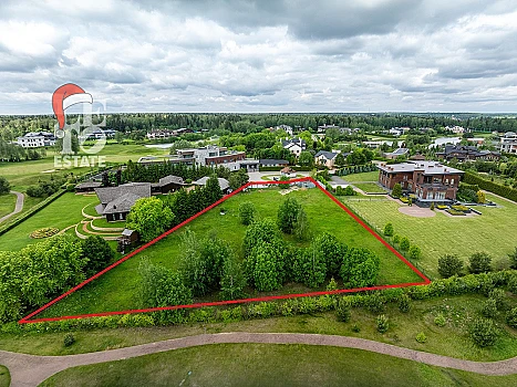 Ровный участок в элитном коттеджном поселке. Тупиковая зона поселка, один сосед. По периметру растут взрослые ели. На участке 2 постройки общей площадью 1400 кв.м. Центральные коммуникации заведены и функционируют. Электричество на участке 50 кВт.