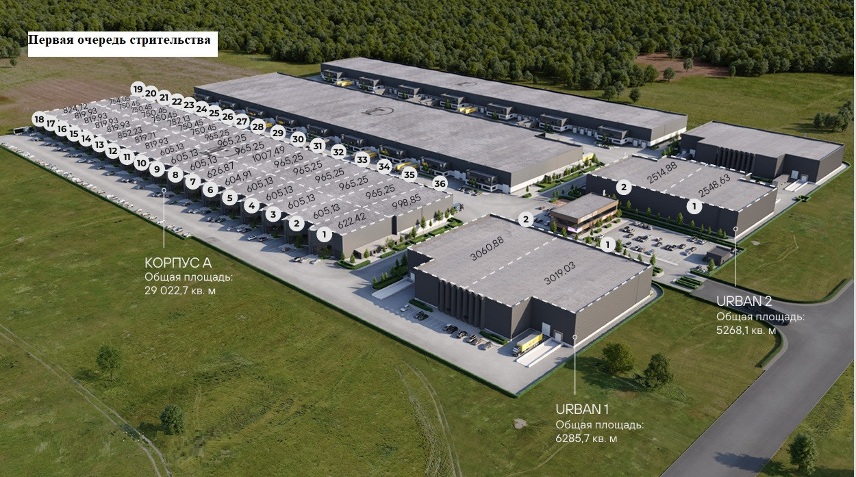 Отдельный, отапливаемый бокс-склад в здании формата Light Industria, общей площадью - 1715,25 кв.м., состоит из следующих помещений: