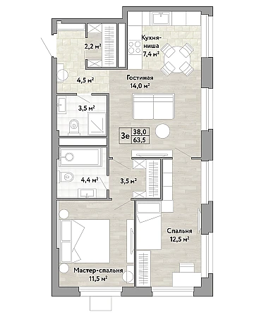 Купить 2к квартиру 63 м² в ЖК Новые Смыслы