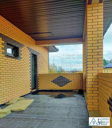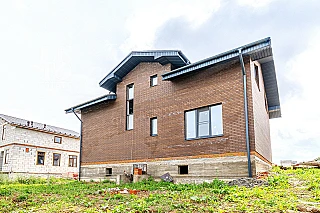 Коттедж построен из газосиликатных блоков, облицован кирпичом. По верху залит армопояс, арматура 12 мм. , кровля из металлочерепицы, утепление 15 см. (три слоя), окна REXAU, перекрытия и лестницы - монолит.