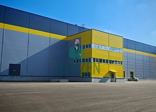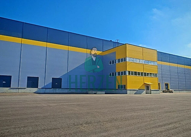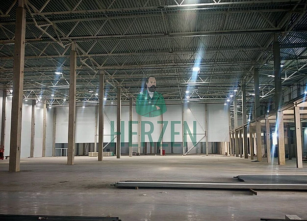 Ровный бетонный пол с антипылевым покрытием. Допустимая нагрузка на пол 5 т/м2.