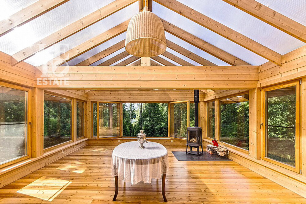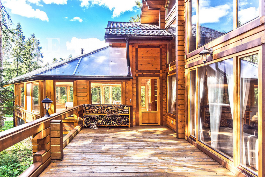 Вашему вниманию представлен деревянный дом из финского бруса в КП "Сосновый Берег". Полностью готов к проживанию, есть вся необходимая техника. В доме использованы современные технологии - геотермальное отопление. Это экологический чистый вид отопления, в котором используется энергия окружающей среды. Большие окна и светлые стены добавляют пространства в доме. На первом этаже есть большая терраса, на втором этаже балконы с видом на шикарный участок на котором растут вековые хвойные деревья. Теплый гараж на 2 м/м. Над гаражом организован зимний сад. Окна сделаны из дерева - сосна. Пол и лестница сделана из лиственницы. Мебель в доме выполнена по индивидуальному заказу - натуральная сосна. В доме есть сауна с зоной отдыха. Под домом есть место для хранения техники и хозяйственных инструментов. Перед домом организована площадка для отдыха, барбекю. На участке сделаны дорожки из камня. Природный ландшафт участка создает картину нетронутой природы. Полное ощущение уединения в лесу позволяется полноценно отдохнуть и насладиться природой. Если вы хотите найти уникальное место не только для отдыха, но и для постоянного проживания - это идеальное место для Вас! Приезжайте всей семьей и Вы захотите остаться надолго в поселке Сосновый Берег!