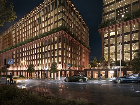 - Панорамное остекление от пола до потолка наполняет пространства светом и открывает виды, создавая ощущение свободы и простора для вашей команды.