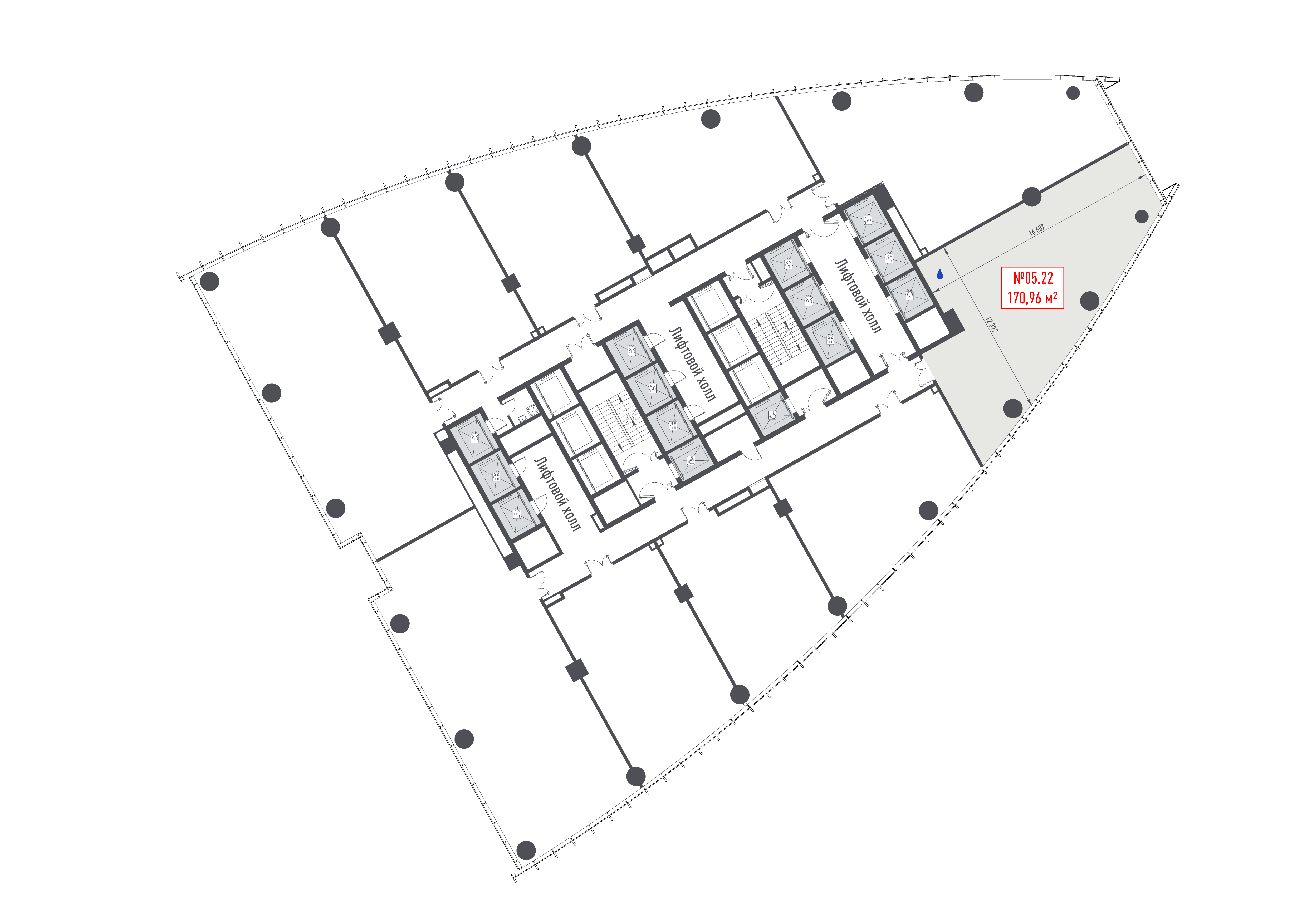 Планировки офисных этажей соответствуют требованиям функционального офиса: глубина помещений - 8-10 м, высота потолков - 3,65 м. Окна в пол обеспечат оптимальный уровень инсоляции и предусматривают возможность естественного проветривания.