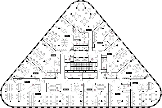 Планировки офисных этажей соответствуют требованиям функционального офиса: глубина помещений - 8-10 м, высота потолков - 3,65 м. Окна в пол обеспечат оптимальный уровень инсоляции и предусматривают возможность естественного проветривания.