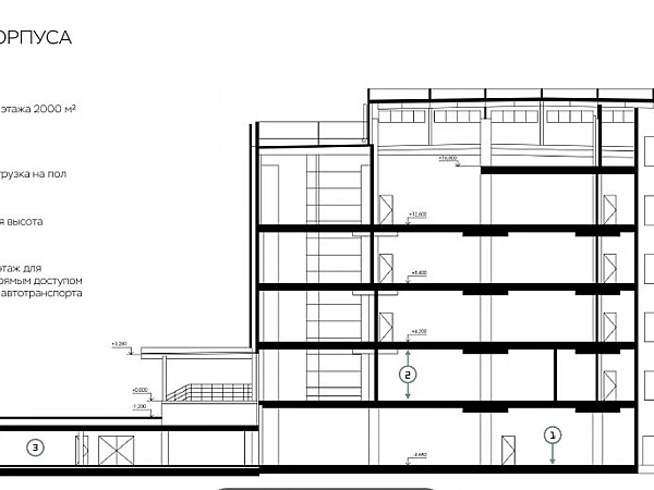 . Помещение на -1 этаже + антресоль, общей площадью 3 040 м2. -1 этаж 2 500 м2, антресоль 540 м2. 8х8м. шаг колонн; Бетонный пол с антипылевым покрытием (720 кг/м² нагрузка на пол). 4 грузовых лифта грузоподъемностью 5 т.; Автоматические секционные ворота. Подземный этаж для отгрузки с прямым доступом курьерского автотранспорта. Пандус для разгрузки малотоннажного транспорта (+0,9 м). Электроснабжение — 2 МВт, II категория.