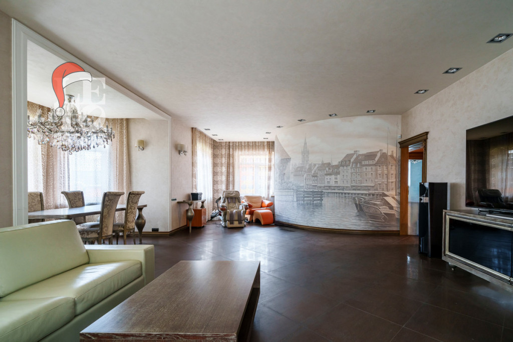 В доме выполнена дорогостоящая отделка: венецианская штукатурка, итальянская плитка, элементы мебели с покрытием сусальным серебром. На стенах прихожей и гостиной, расписанных вручную, изображены европейские городские пейзажи. Вся мебель итальянская, выполнена на заказ. Установлена техника ведущих немецких брендов Neff, Miele, сантехника Grohe. Чугунный английский камин в гостиной в стиле XVIII века. Великолепные люстры из немецкого и египетского горного хрусталя не просто дополняют интерьер, но и создают чувство завершенности дизайна. Лестница и двери изготовлены из дуба. Полы в кабинете и на втором этаже - из палисандра. На первом этаже, в местах, где плитка, разведены теплые полы. На каждом этаже установлено кондиционирование.