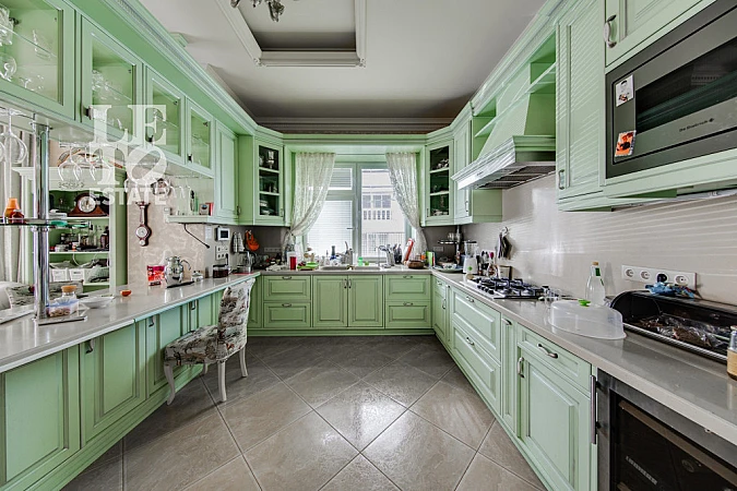 Первый этаж – гостиная, кинозал, детская игровая, кухня, кладовые с морозильными камерами и промышленными холодильниками, две гардеробные, два кабинета, винный погреб, оружейно-сейфовая комната, тренажерный зал, сауна из кедра.