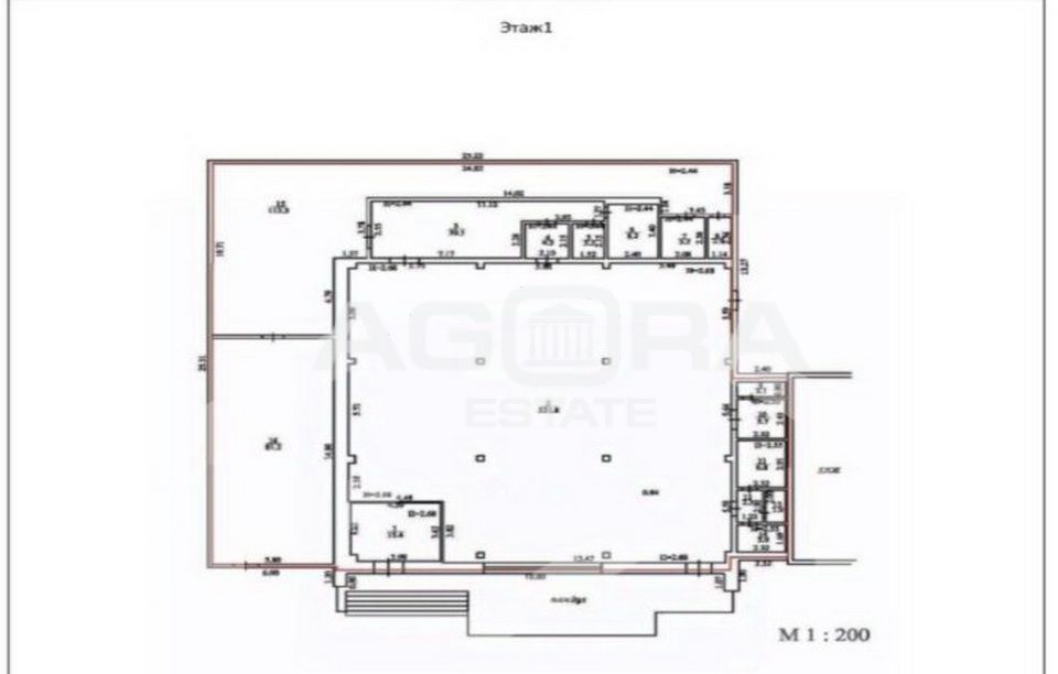 Площадь 607 кв.м, один этаж, отдельный вход с первой линии домов.