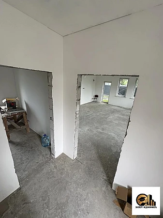 Санузлы на 1-м и 2-м этажах полностью готовы. Остальные помещения требуют чистовой отделки по вашему вкусу. На 1-м этаже — система теплого пола.
