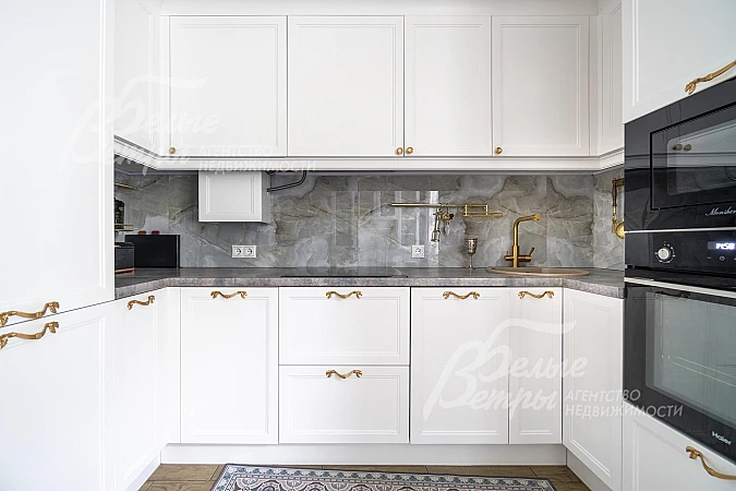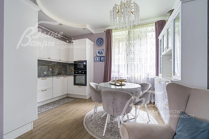 Мебель, оборудование: в таунхаусе установлена новая мебель, встроенная кухня с бытовой техникой: холодильник, электрическая варочная панель, духовка Haier, микроволновка и посудомоечная машина Monsher, стиральная машина Bosch на 6.5 кг, вся техника встроенная. Фартук на кухне из керамогранита (60х1.2 м, Индия). Обеденная группа на 4 персоны, стол раздвижной с каменной столешницей, есть хозяйское полу-кресло. Буфет для посуды. Зона отдыха - журнальный столик из массива дерева, кресло и шкаф под библиотеку. Зона ТВ с раскладным диваном на 3 места, с ящиком для белья. В спальнях 2го этажа - гарнитур Любава (Белоруссия) из массива дерева, кровать со спальным местом 1.8 м и оттоманка, выполненная на заказ; кровать Ассоль со спальным местом 1.6 м, шкаф, тумбы и кресло-кровать. На 3-ем этаже: пуф с журнальным столиком и торшером, садовая мебель. Во всех помещениях портьеры, люстры и светильники..