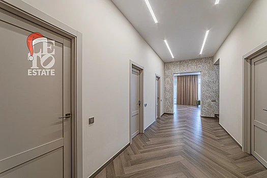 Планировка продумана для максимального удобства: просторная гостиная-столовая, стильная кухня, оснащенная современной бытовой техникой, четыре уютные спальни, включая мастер-спальню с индивидуальной гардеробной зоной.