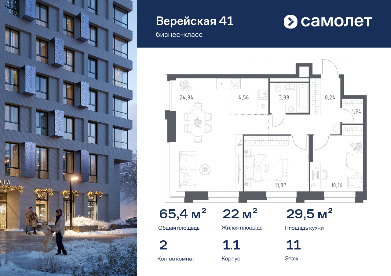 Строим кварталы для жизни с заботой о будущем. Предлагается 2-комнатная квартира бизнес-класса 65,4 кв.м в корпусе 1.1 на 11 этаже, в «Верейская 41»
