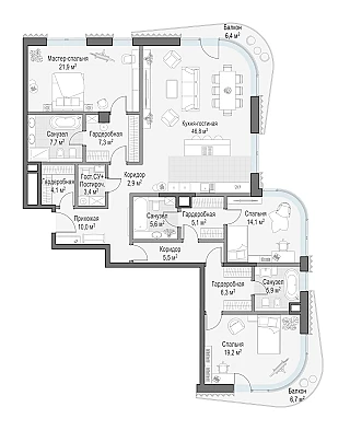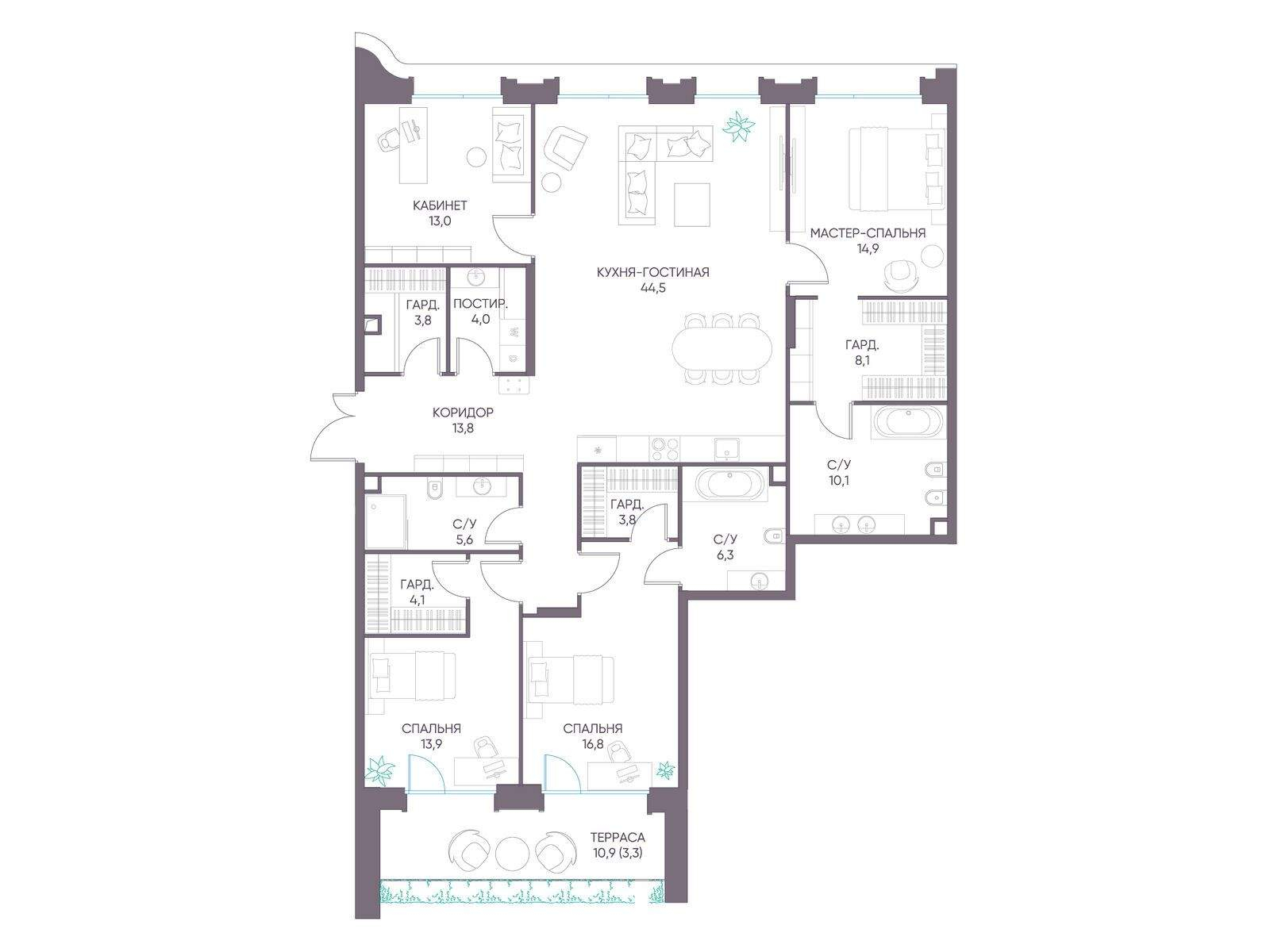 Купить 4к квартиру 166 м² в клубном доме ДОМ XXII