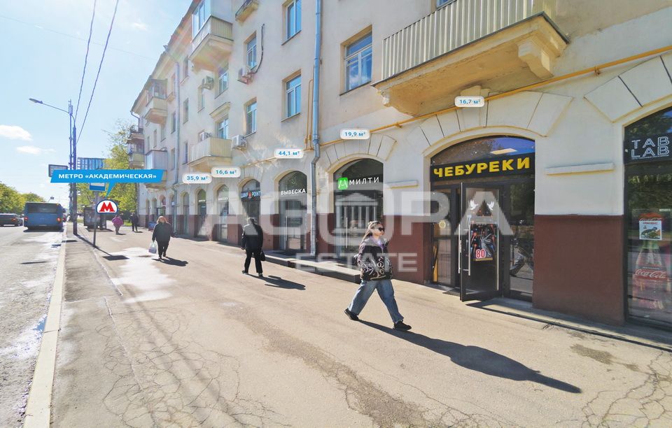 Помещение расположено у входа/выхода из метро Академическая. ЮЗАО.