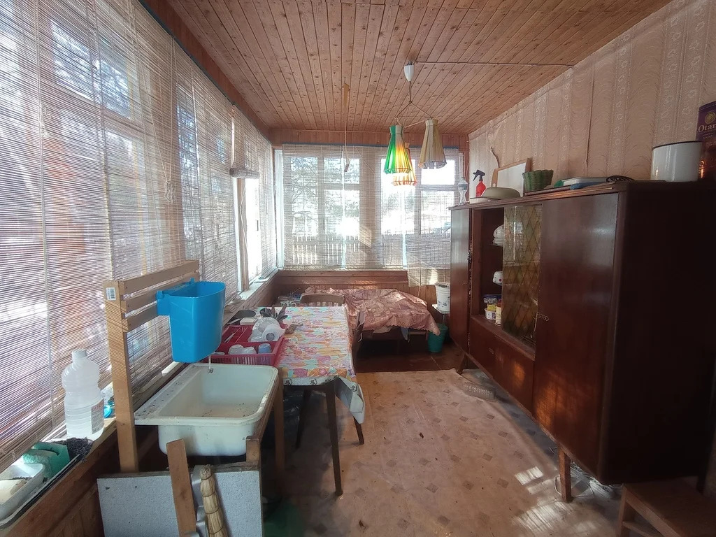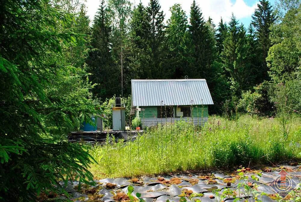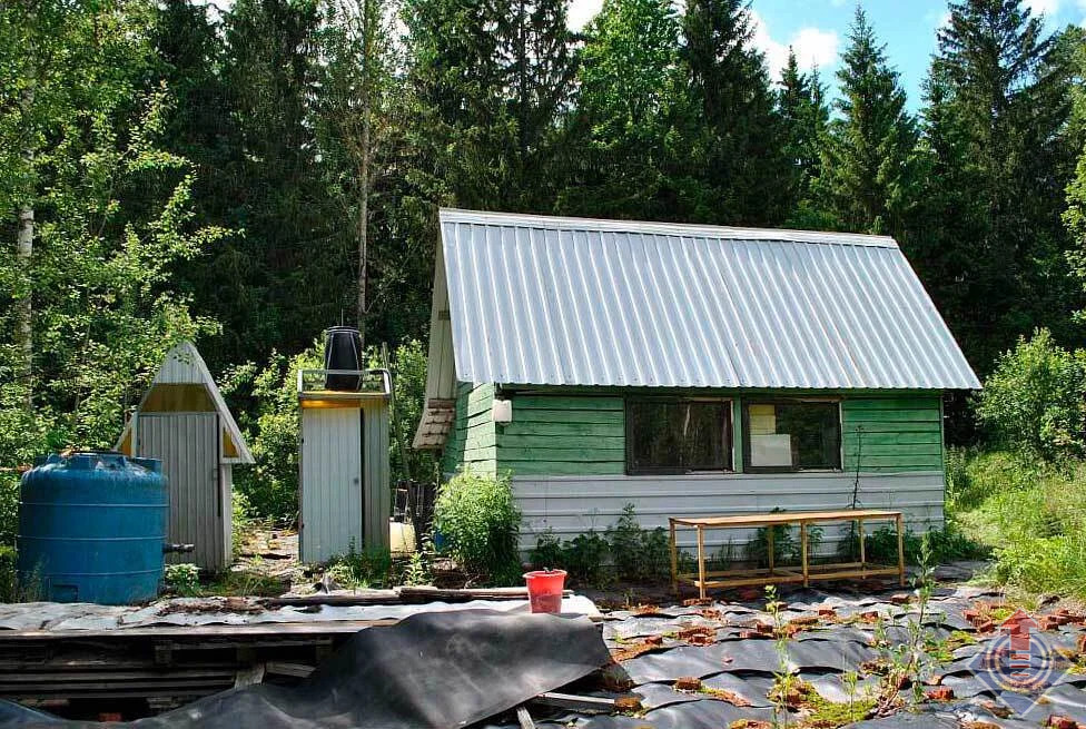 Дача (бытовка) 18 кв.м (6х3 м) каркасная, утепленная пеноплексом. Фундамент - опорно-столбчатый. Кровля - металлическая. Внутри под черновую отделку. В бытовке электричество. Газ баллонный. Летний душ. Уличная уборная. Сарай для садового инвентаря и инструментов.