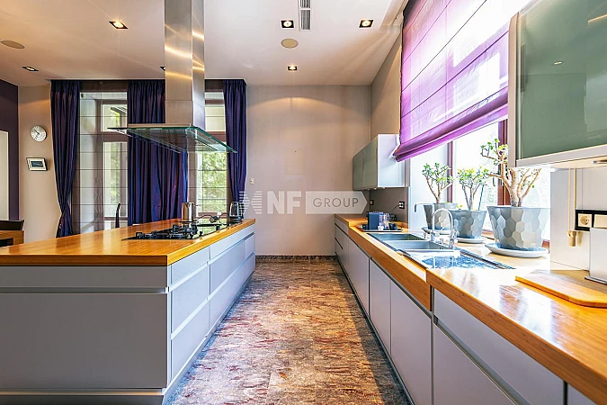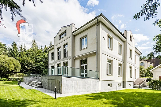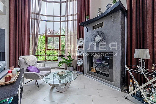 Просторная загородная резиденция, дизайн интерьера выполнен по авторскому проекту. В отделке использовали натуральный камень и ценные породы дерева. Все коммуникации центральные. Дом готов к проживанию.