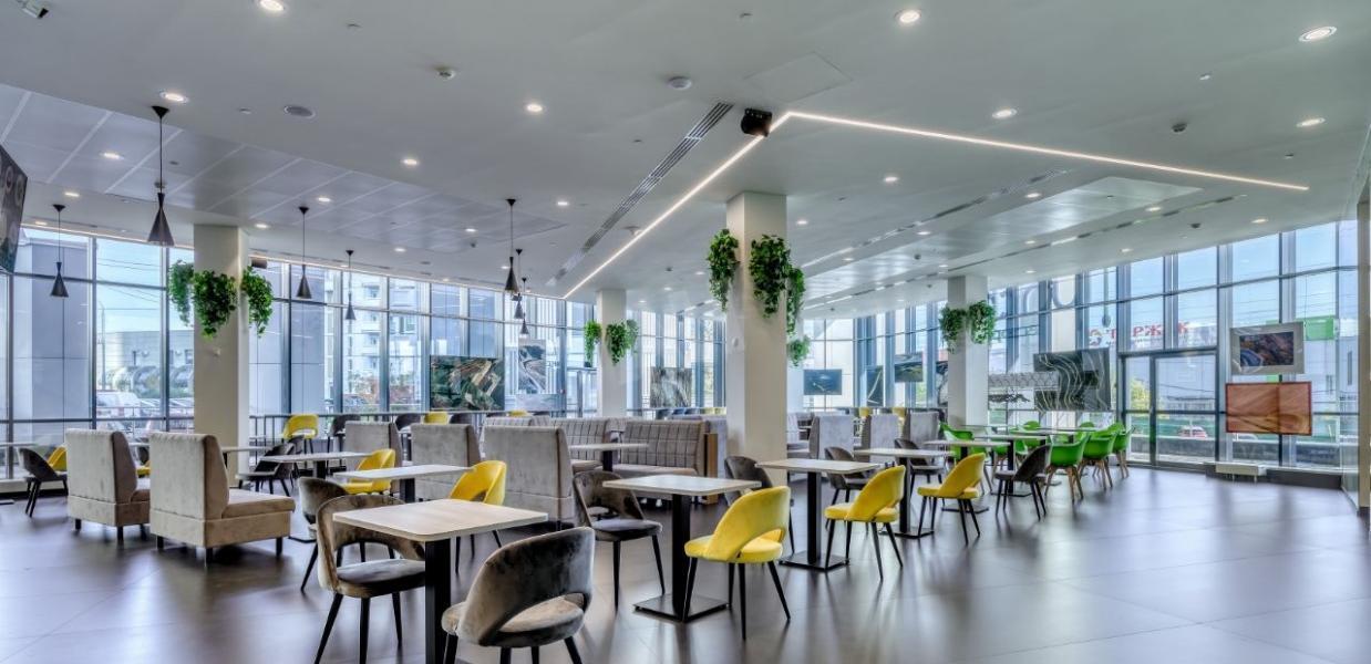 • Инфраструктура на высшем уровне: В здании находятся столовая, кофейня и клиника эстетической медицины для вашего удобства.