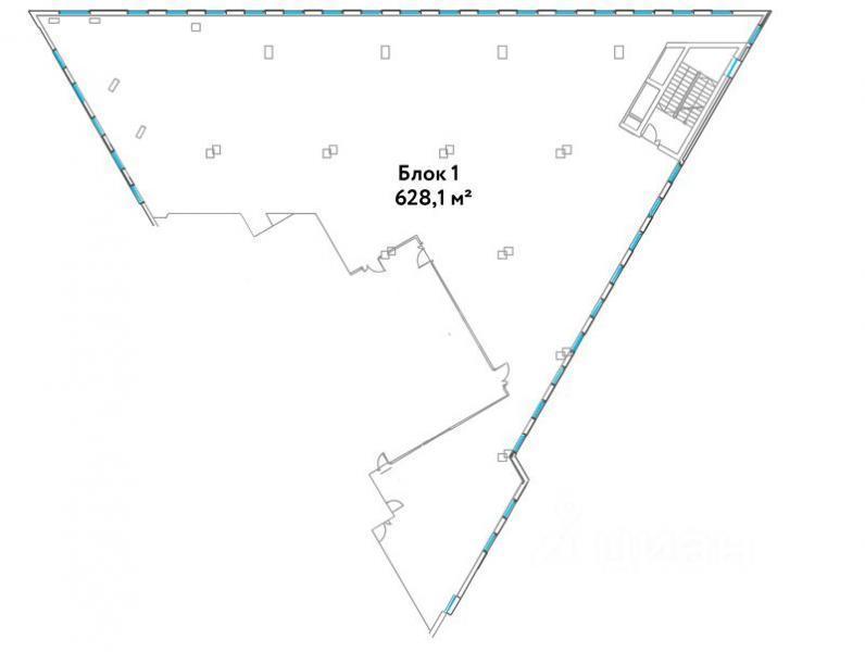 Площадь офиса 628,1 кв. м. по БТИ. Расчетная площадь 672,07 кв.м.
