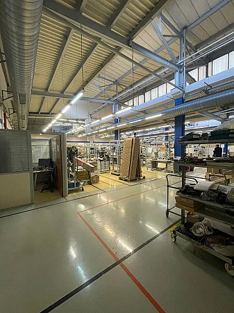 отдельный вход с улицы для сотрудников с комнатой охраны, далее ресепшн, что позволит вам, при необходимости, развести или свести потоки рабочих и офисных сотрудников, несколько душевых и раздевалок, несколько с/у, на антресоли офисные помещения (360м2) с удобным обзором производственной зоны (второй свет), по всей площади аэрационные фонари в в кровле, что дает много естественного освещения,