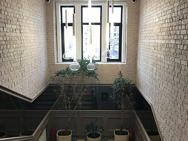 Офис состоит из 4 кабинетов, зоны ресепшен на входе, серверной и 2 санузлов. Выполнена дорогая дизайнерская отделка в стиле лофт из качественных материалов с применением самых современных