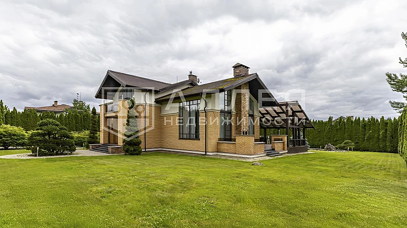 Дизайнерский дом под ключ на уникальном ландшафтном участке. Архитектурное решение выполнено по индивидуальному проекту, сделан дорогой авторский ремонт. Дом полностью оснащен мебелью мировых премиальных брендов: Tom Dixon, Bonaldo, Moda, Creazioni, Porada, Cattelan, Fiam, Angelo, MOOOi, Eva Laz, Missoni, Etro. Кухонный гарнитур и бытовая техника Miele. TV и звуковая аппаратура Bang&Olufsen. Эксклюзивность интерьера подчеркивают картины и арт объекты. Большая гостиная с панорамным остеклением и потолками высотой 6 метров. Дорогие деревянные стеклопакеты. На первом этаже есть кабинет и гостевая спальня. Установлены итальянские двери из натурального дерева высотой 2,5 метра с дизайнерскими ручками покрытыми 24К золотом. Разведены водяные теплые полы и системы климат контроля Mitsubishi. Из гостиной выходы на крытую веранду с трех слойным остеклением и отдельной зоной барбекю. Дополнительно установлена охранная сигнализация с системой видеонаблюдения.