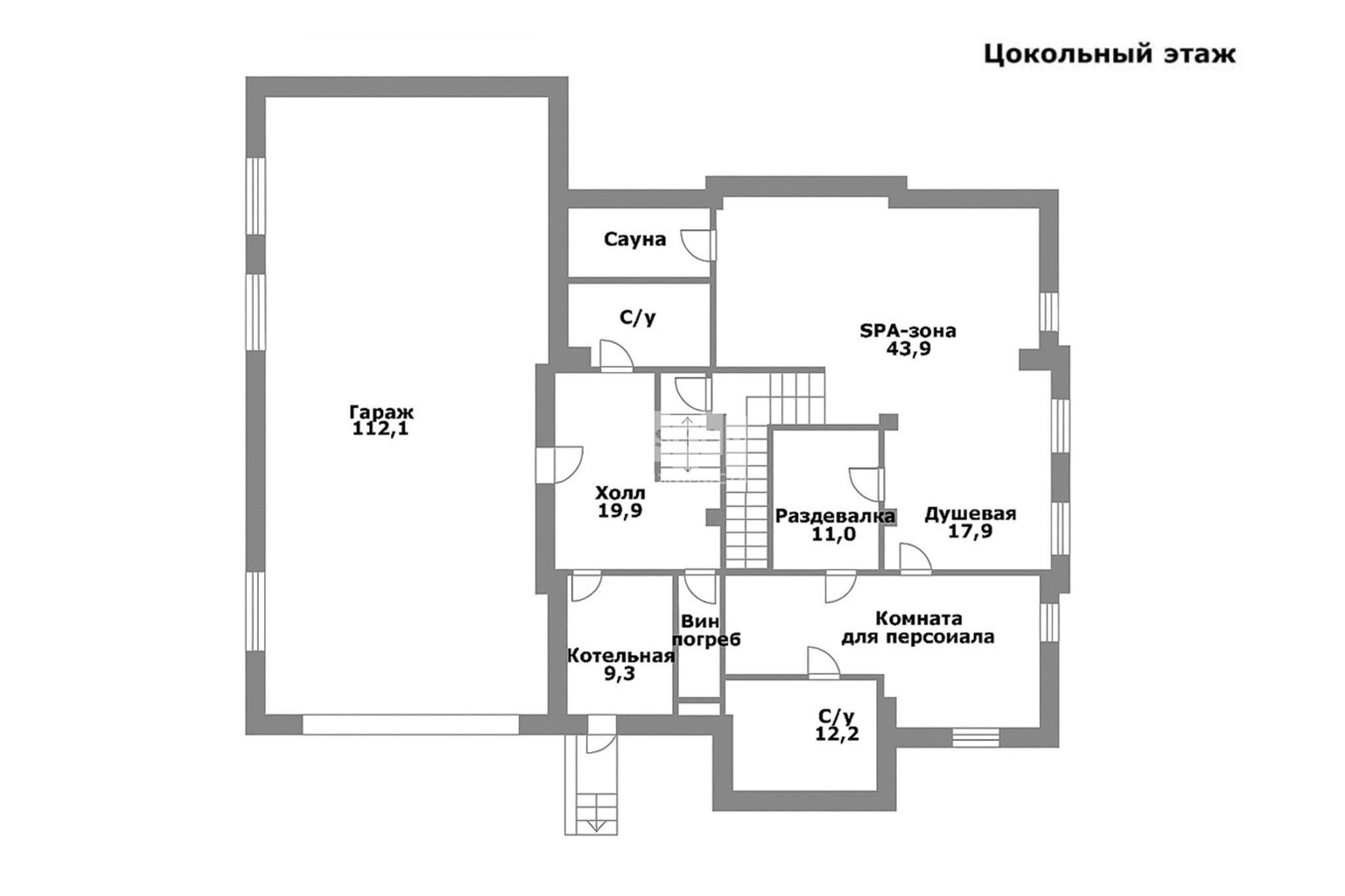 Цокольный этаж: винный погреб, кинотеатр, SPA-зона (джакузи, сауна, душевая) , санузел, комната для персонала, гараж на 2 машины место;