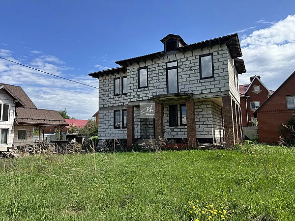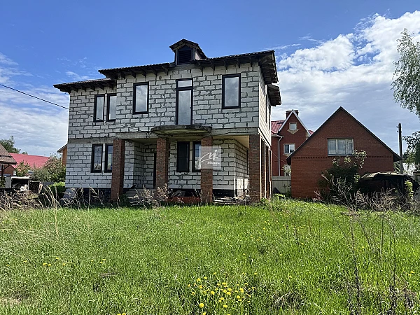 На участке площадью 10 соток есть баня, а подъезд к дому выполнен из бетона. Материал постройки — блочный. Отопление обеспечивается собственной котельной, водоснабжение — скважиной.
