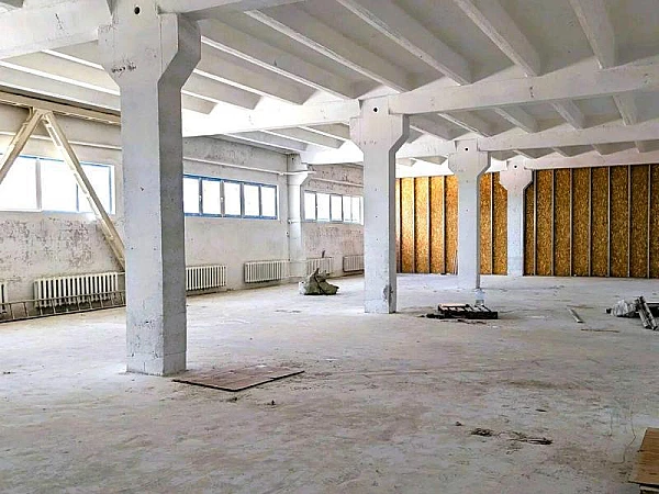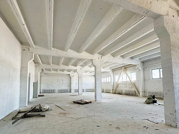 Отдельно стоящее 3-этажное здание на территории производственно-складского комплекса, высота потолков 4,5 м, шаг колонн 6х6 м, пол бетон, зона разгрузки, пандус.