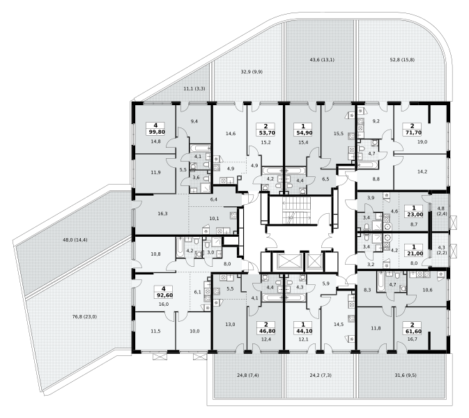 Продаются 2-к апартаменты площадью 45.94 кв.м. на 16-м этаже 20 этажного дома в ЭВОПАРК Сокольники от ГК ОСНОВА.