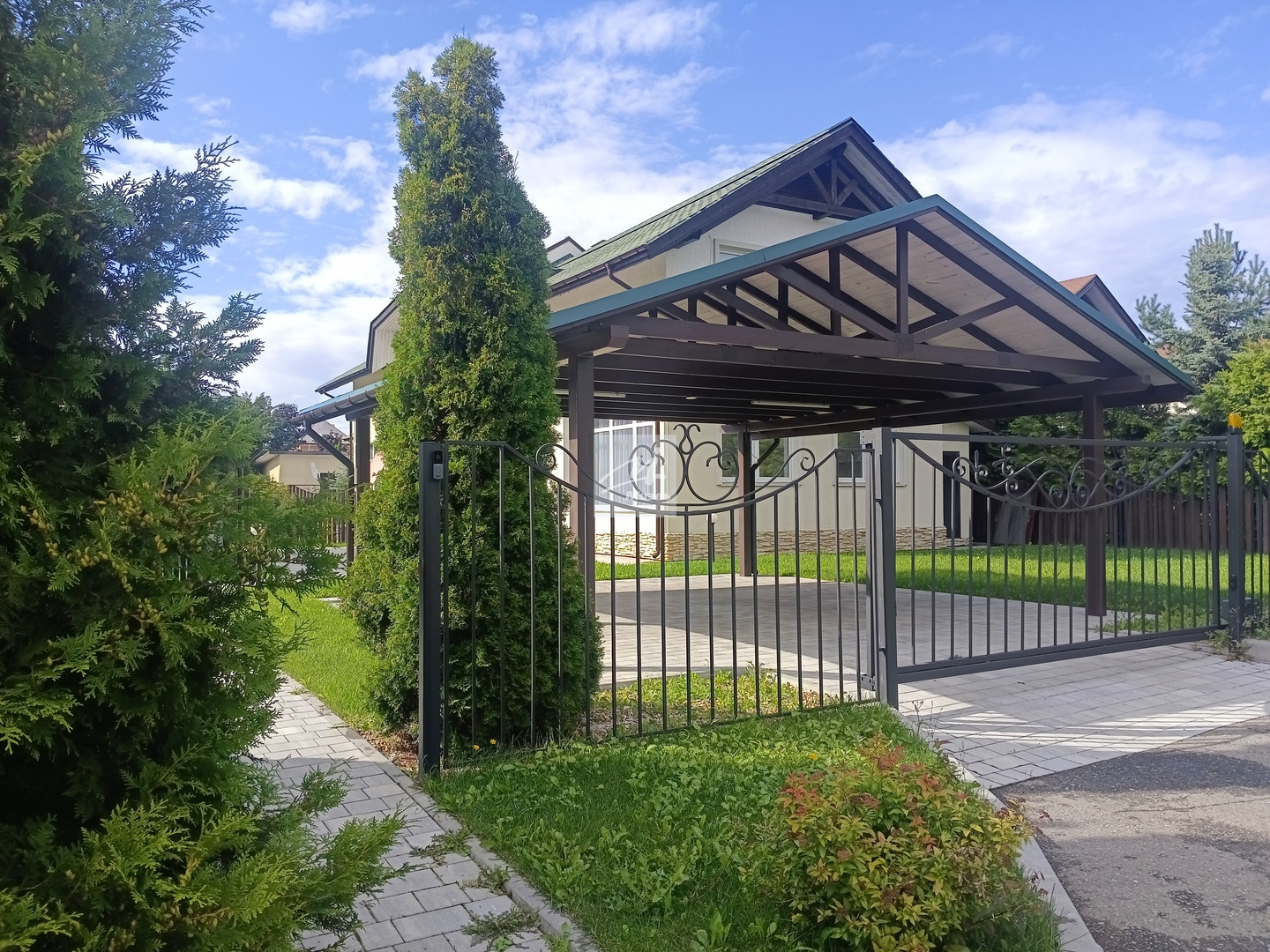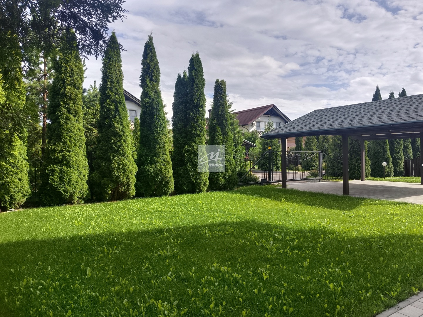 * Участок: 5 соток, правильной формы с закрытой беседкой и прилегающим к ней небольшим открытым лобби под навесом, а также отдельно стоящий навес для машин.Ворота откатные на пульте управления.Озеленение - газон и деревья по границе.