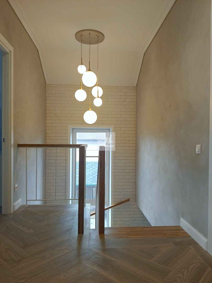 * Дом.Рациональная планировка с 4 изолированными комнатами и кухней-гостиной:1й этаж: просторный холл, кухня-гостиная, комната свободного назначения, гардеробная, санузел, техническое помещение и постирочная.2й этаж: 3 спальни, 2 санузла, сауна.Из всех комнат 2го этажа есть выход на балконы.Все помещения оснащены мебелью и техникой. Теплые полы.Кондиционеры в каждой комнате.Высококачественные материалы отделки.