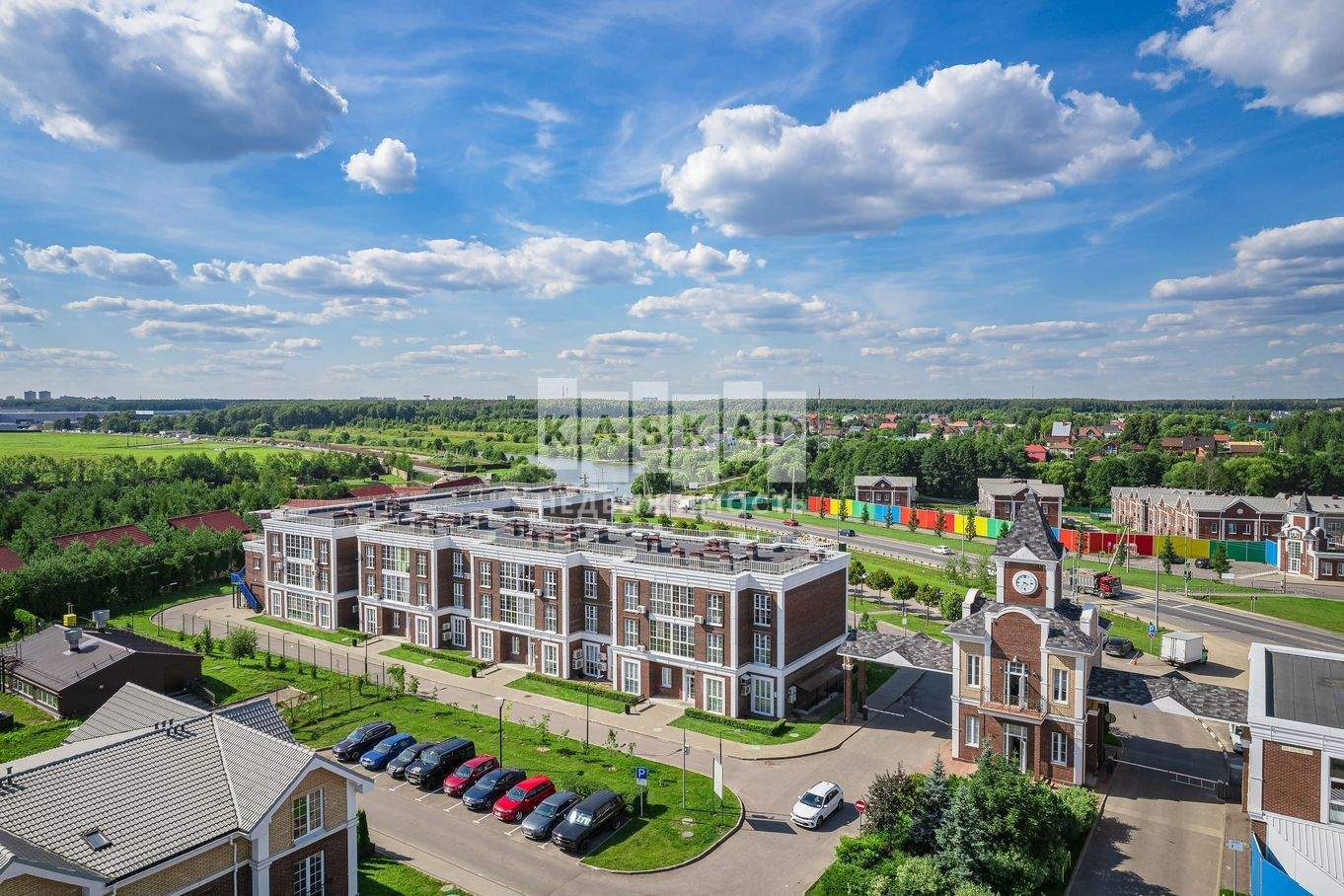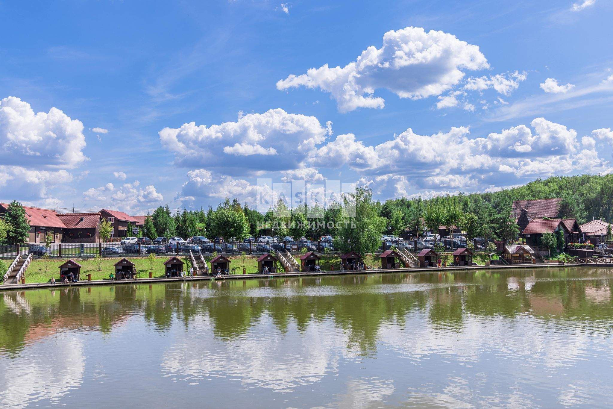 Собственная инфраструктура поселка: школа, детский клуб, игровые городки, спортивные площадки, футбольное поле, магазин, кафе, набережная с пляжем, площадки для пикников, прогулочные и парковые зоны, услуги охраны и управляющей компании. Въезд на территорию по пропускам.