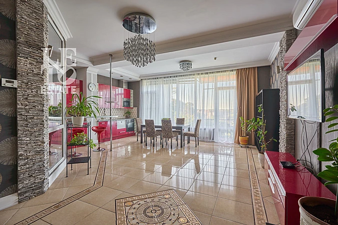 Арт. 109604527 Вашему вниманию представлена комфортная двухуровневая квартира. В наличии есть все необходимое для проживания. Установлен интернет, система охраны. Проведены теплые полы на двух этажах. На первом этаже установлена система кондиционирования. На кухне установлена встроенная техника (плита, холодильник, микроволновая печь, духовой шкаф, посудомоечная машина). Из квартиры есть выход на внутренний двор, где расположена небольшая зона отдыха.