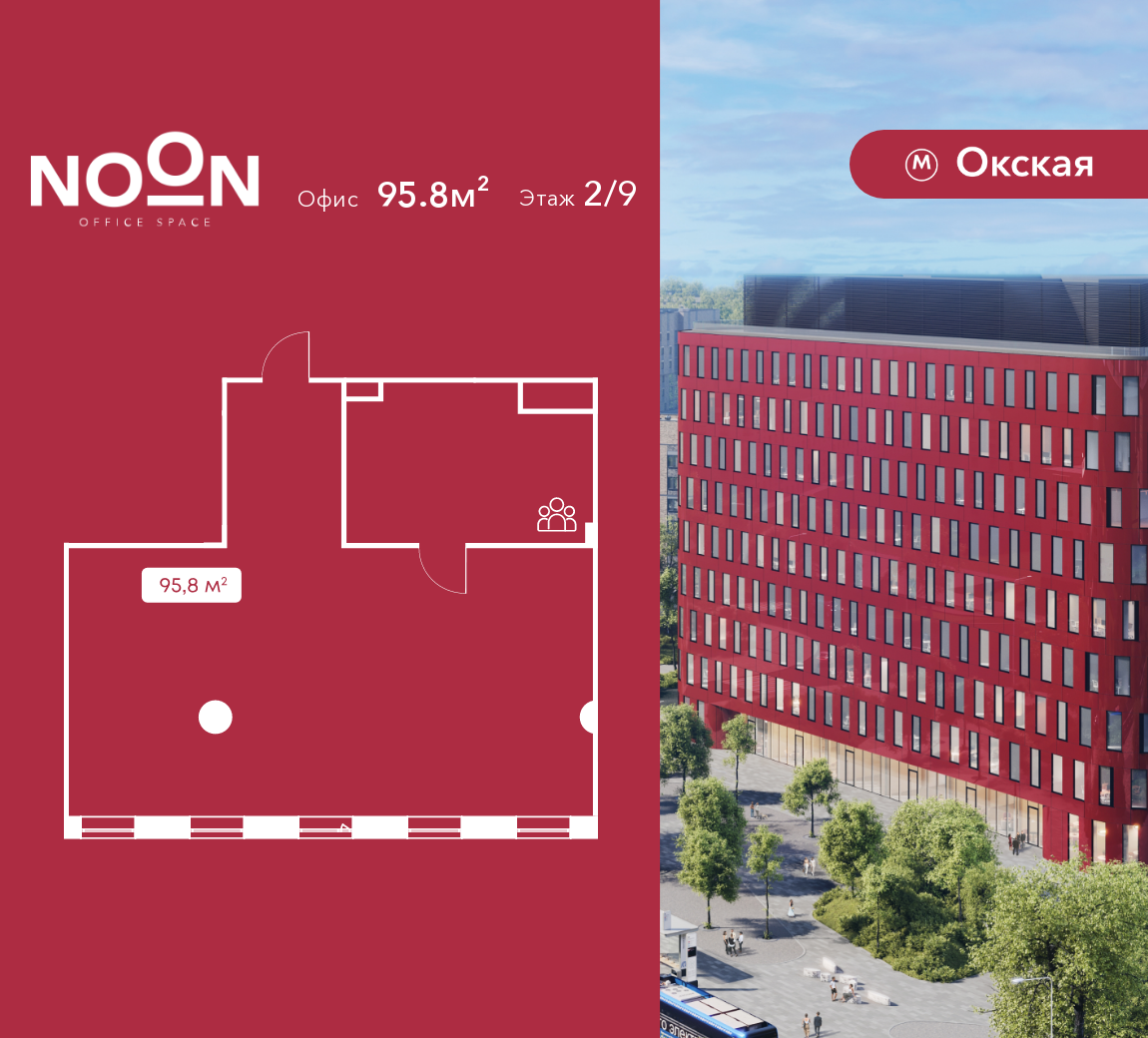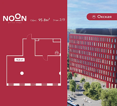 Продается офисное помещение площадью 95.8 м2 на 2 этаже в бизнес-центре NOON от