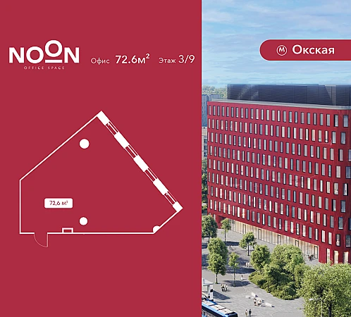 Продается офисное помещение площадью 72.6 м2 на 3 этаже в бизнес-центре NOON от