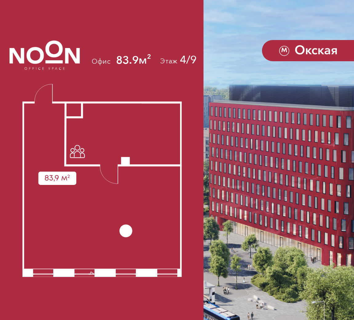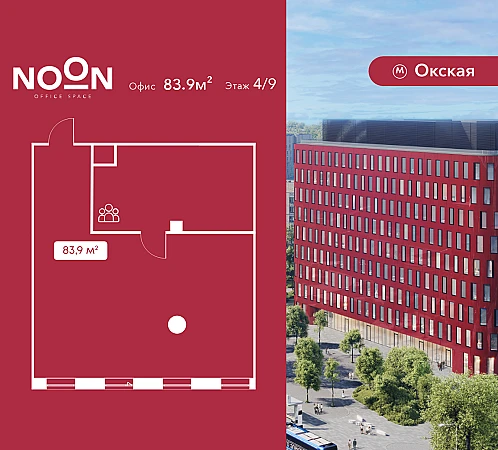 Продается офисное помещение площадью 83.9 м2 на 4 этаже в бизнес-центре NOON от