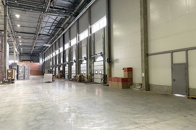 Современный производственно-складской комплекс, сверхплоские полы с упрочненным антипылевым покрытием (по стандарту FM2 Special Standard), нагрузка 9 тонн/м2, шаг колонн 12х24 м, потолки 12 м. Автоматические доклевеллеры с герметизаторами проема.